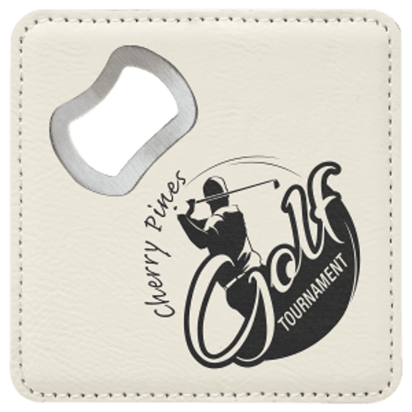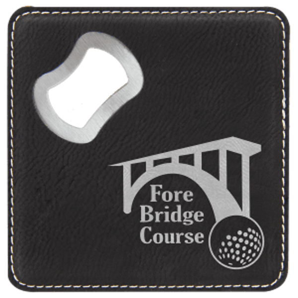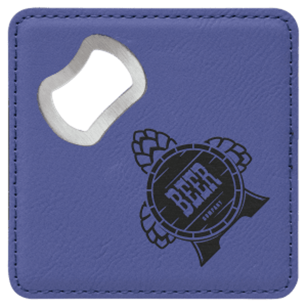 4" X 4" Square Leatherette Coasters with Bottle Opener