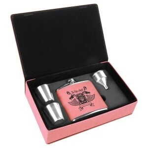 aserable Leatherette offers the look and feel of genuine leather at a fraction of the price. The smooth feel powder coated or raw stainless gives you. This richly textured, synthetic material is water resistant, easy to clean and durable enough for the rigors of daily use. The high quality workmanship of each leatherette piece is sure to impress every recipient with its elegant individuality. Flask is made of a non absorbent stainless steel material which is also engravable for personalization.